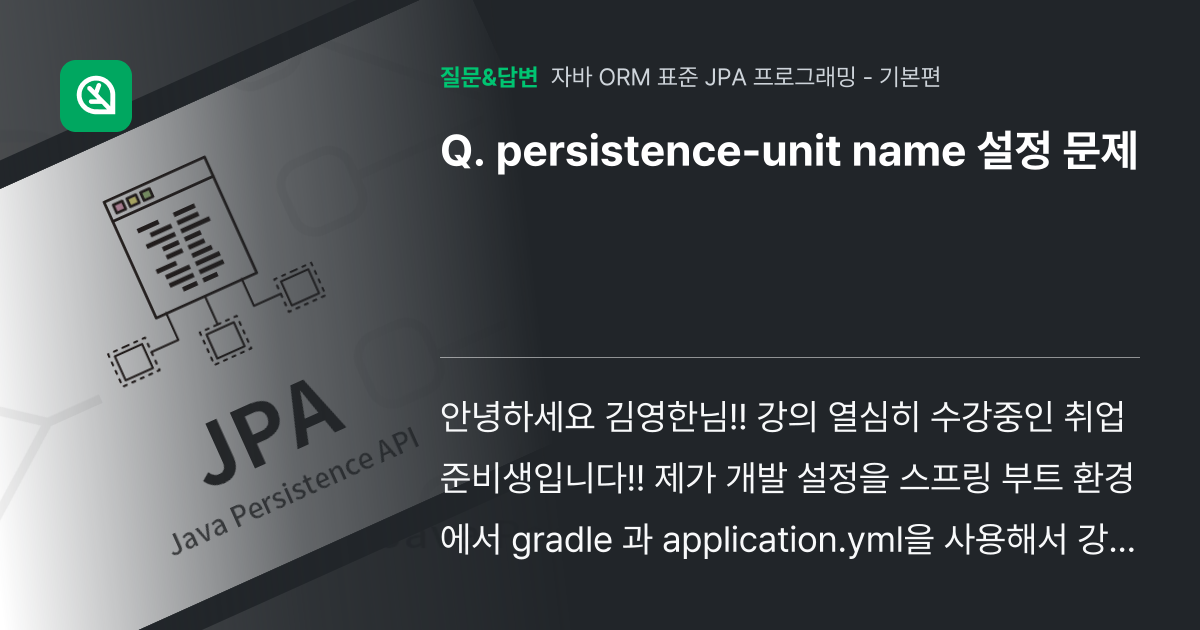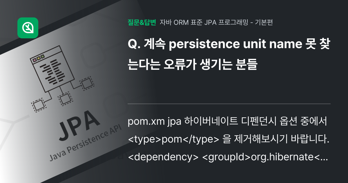 계속 persistence unit name 못 찾는다는 오류가 ... - 인프런 | 커뮤니티 질문&답변