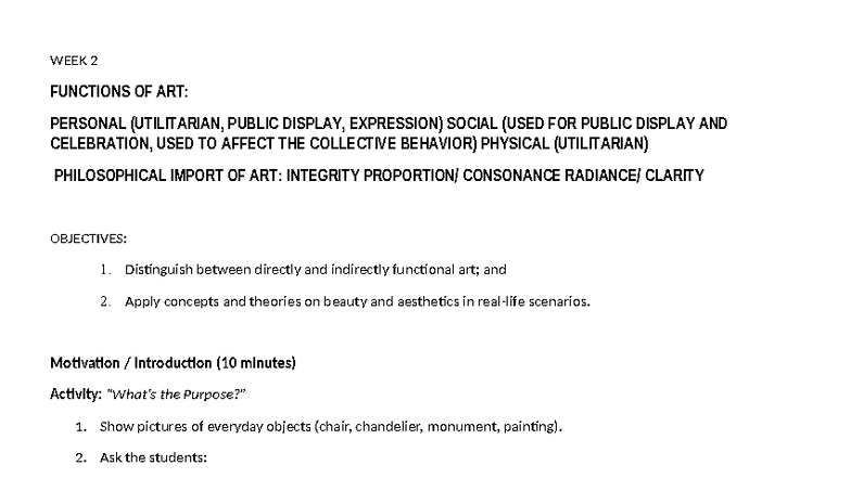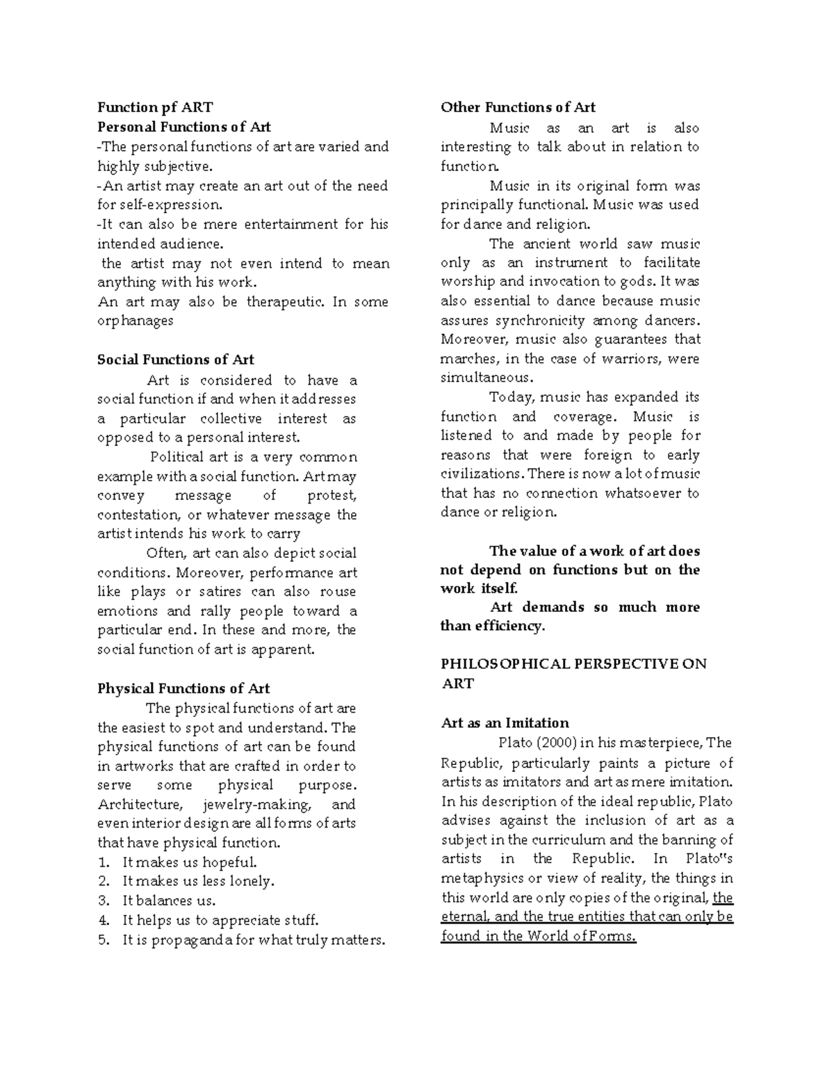 Functions and Philosophy of Art.pptx//// | PPTX
