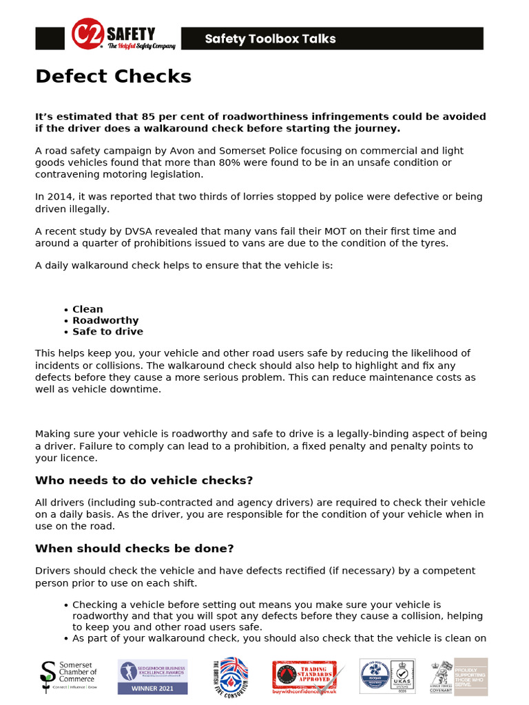 Walk Around Check (Defect Check) Tool Box Talk Template | Transport UK