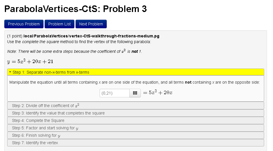 Solved ParabolaVertices-CtS: Problem 1 Previous Problem | Chegg.com