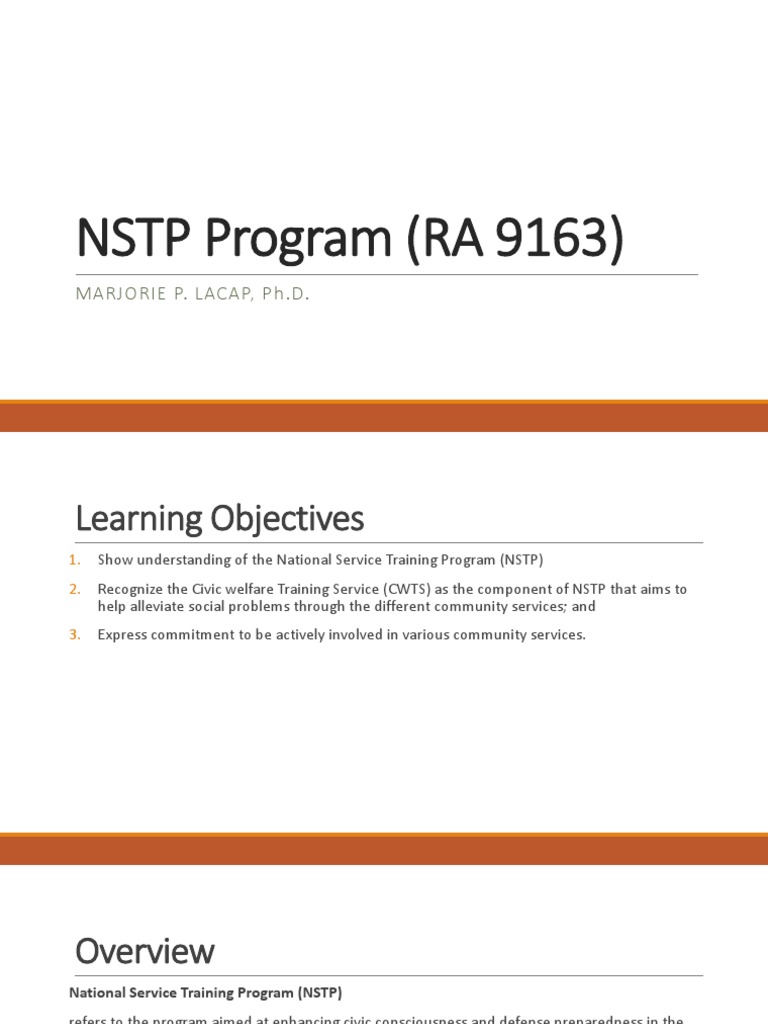 NSTP Overview and Components Explained | PDF | Reserve Officers ...