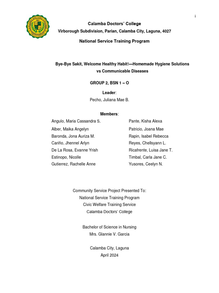 NSTP FORMAT PAGE Example | PDF | Hygiene | Public Health