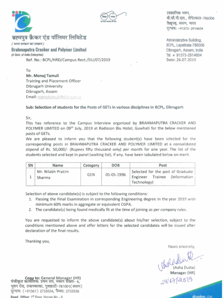 BCPL Dibrugarh Recruitment 2025 – 27 Manager, Engineer & Officer Posts