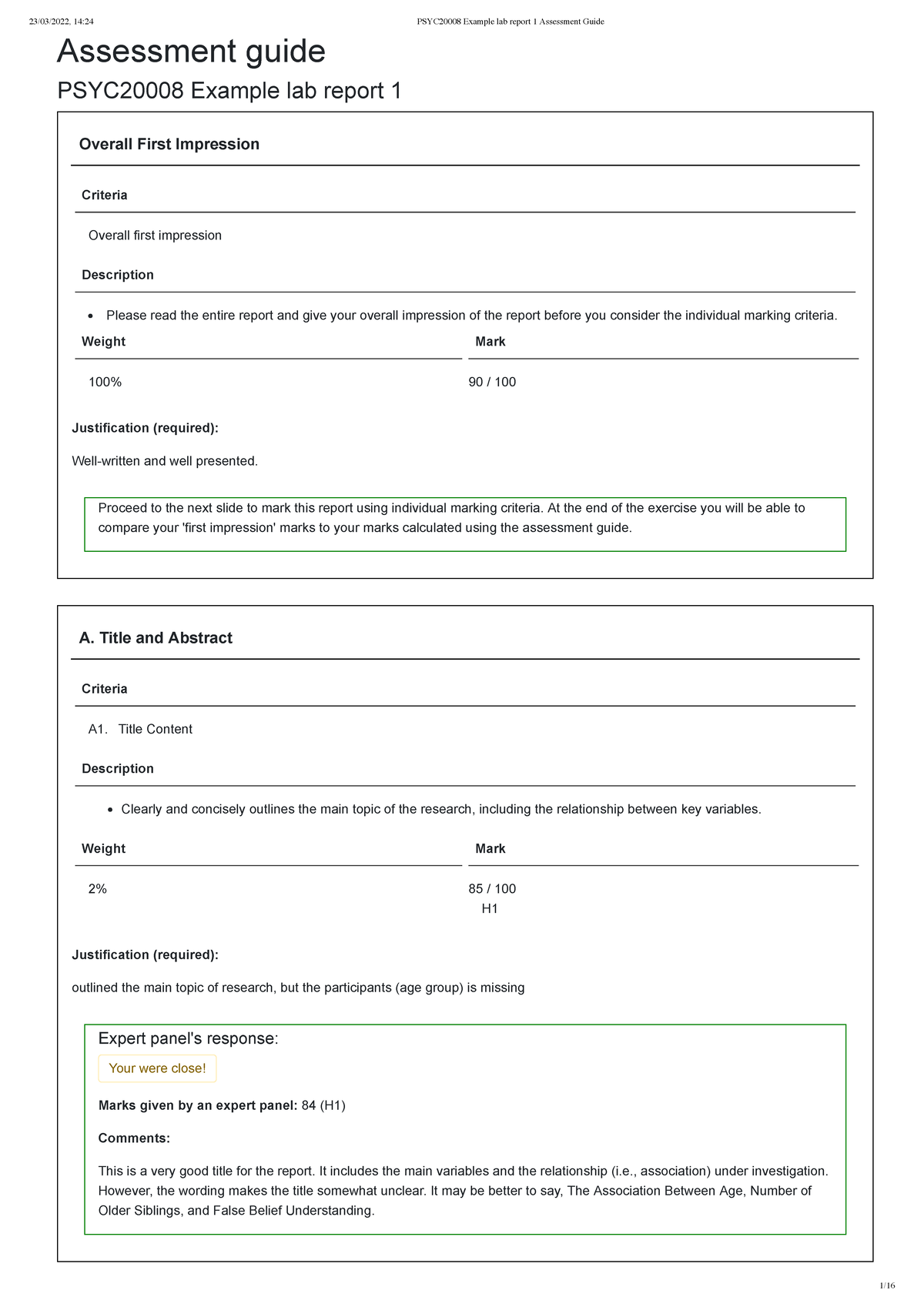 PSYC2000 8 Example lab report 1 Assessment Guide - Assessment guide ...