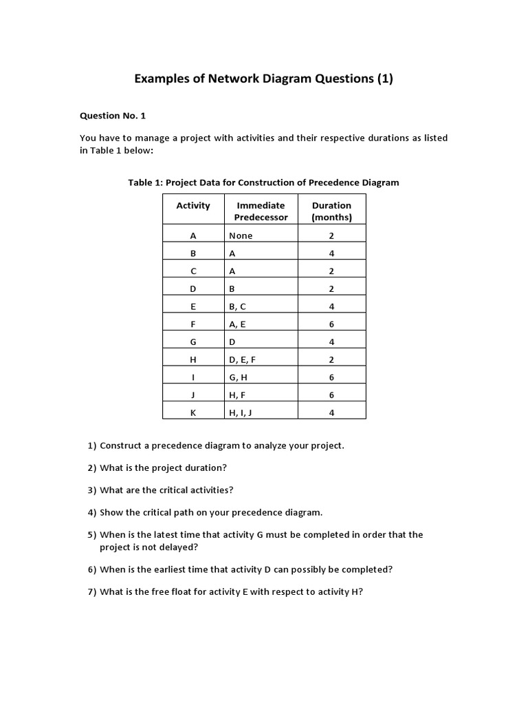 Example of Network Diagram Questions | PDF | Analysis | Applied Mathematics