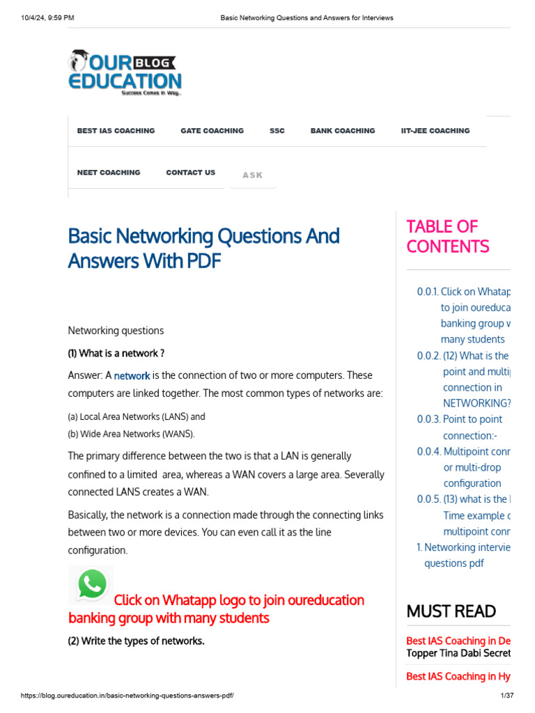 Basic Networking Questions and Answers For Interviews | PDF | Network ...