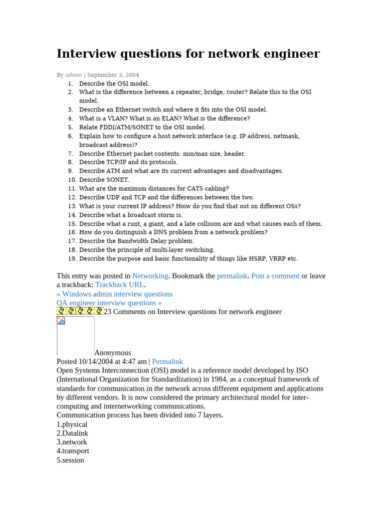 Interview Questions For Network Engineer | PDF | Computer Network ...
