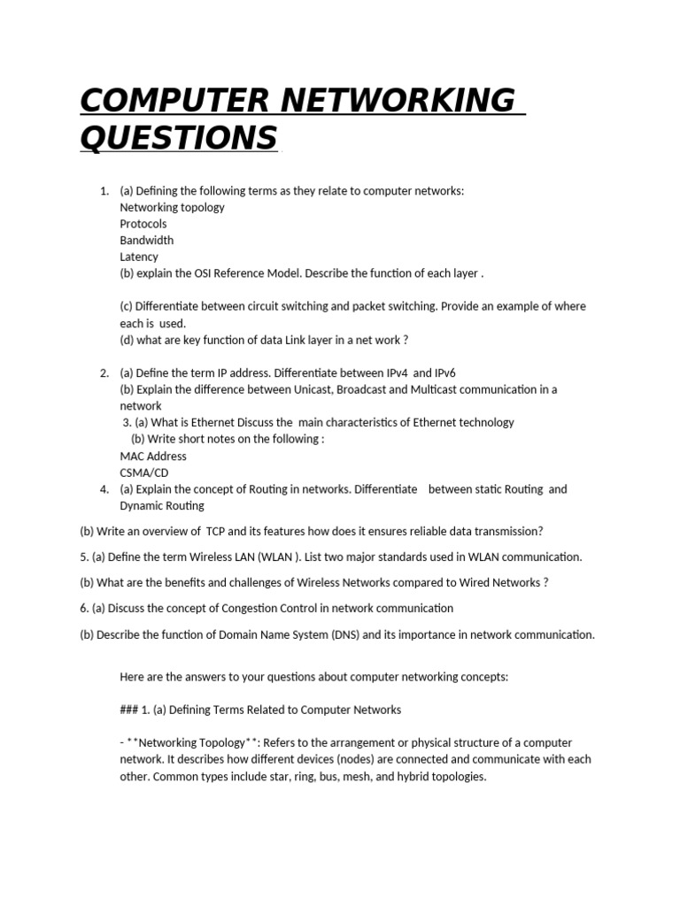 Networking Questions | PDF | Network Topology | Computer Network