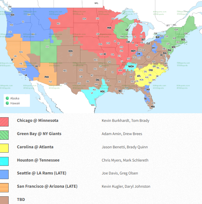 Here's the TV broadcast map for Rams vs. Bears in Week 4