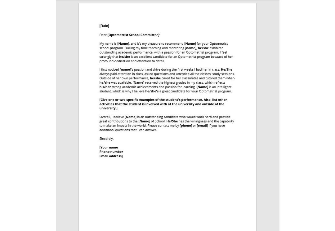 Optometrist School Recommendation Letter Template, Optometrist School ...