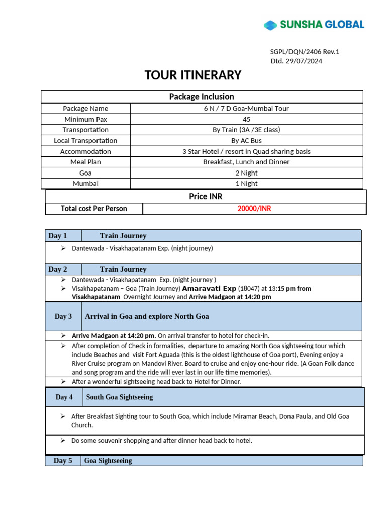 TOUR- Package-1 - sample of simple itinerary of a tour - J & C Travel ...