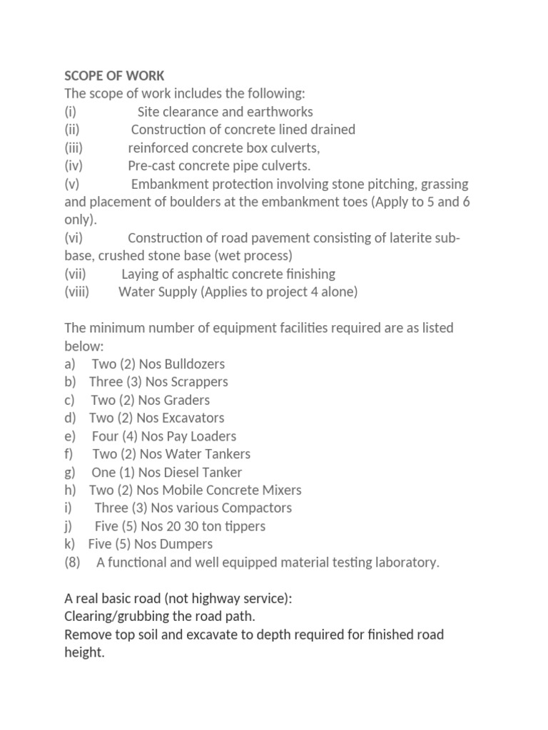 Road Construction Scope & Equipment | PDF