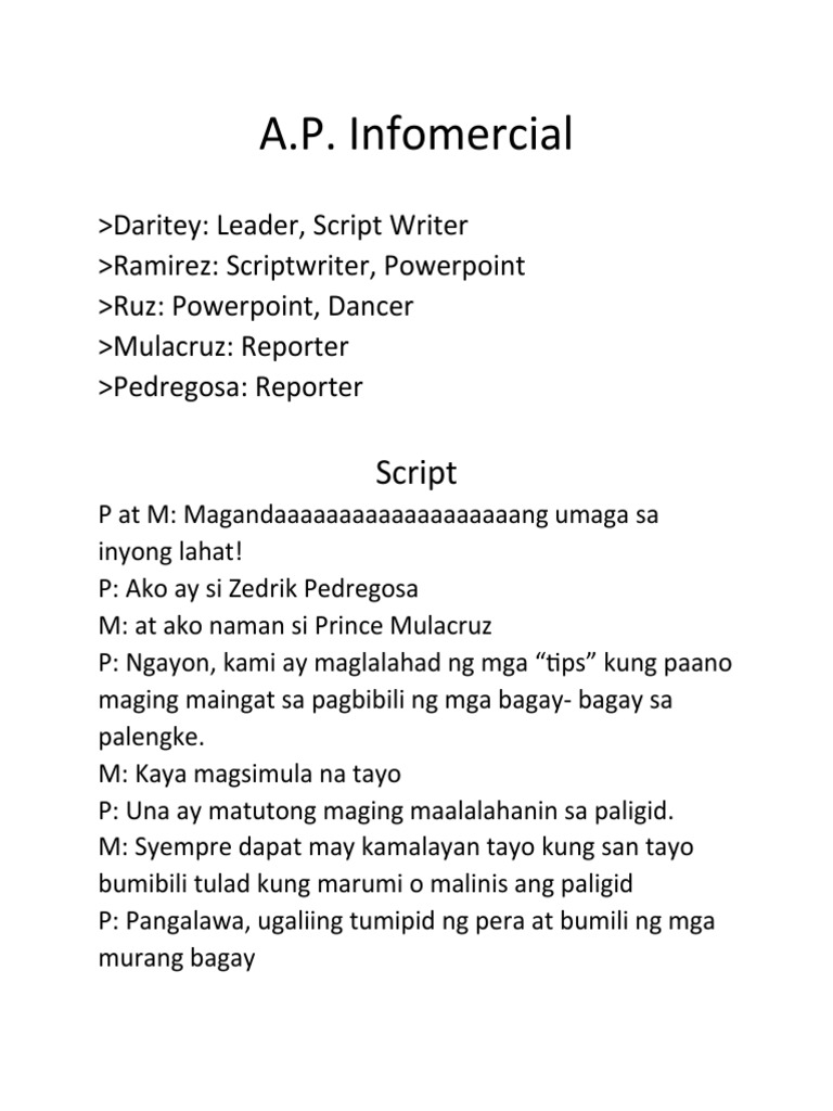 471950057 Infomercial Filipino Docx | PDF