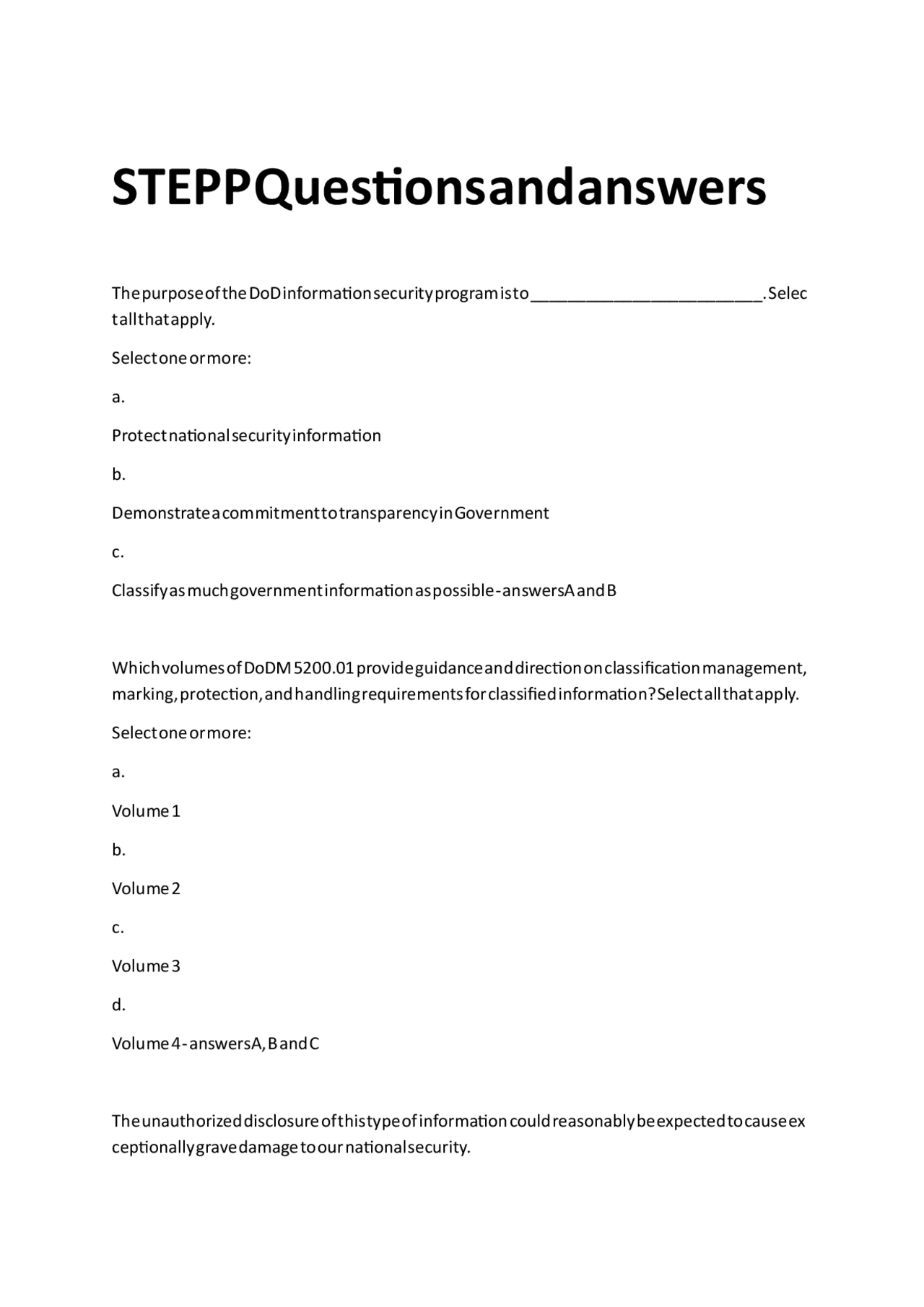 STEPPrhQuestionsrhandrhanswers.pdf | Exams Nursing | Docsity