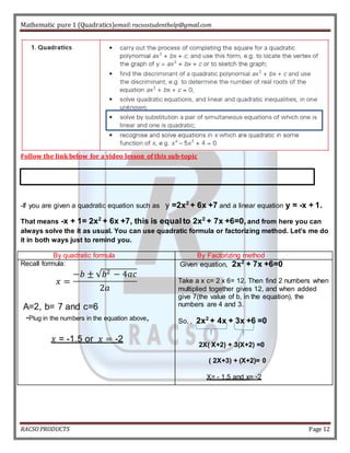 AS LEVEL QUADRATIC (CIE) EXPLAINED WITH EXAMPLE AND DIAGRAMS | DOCX