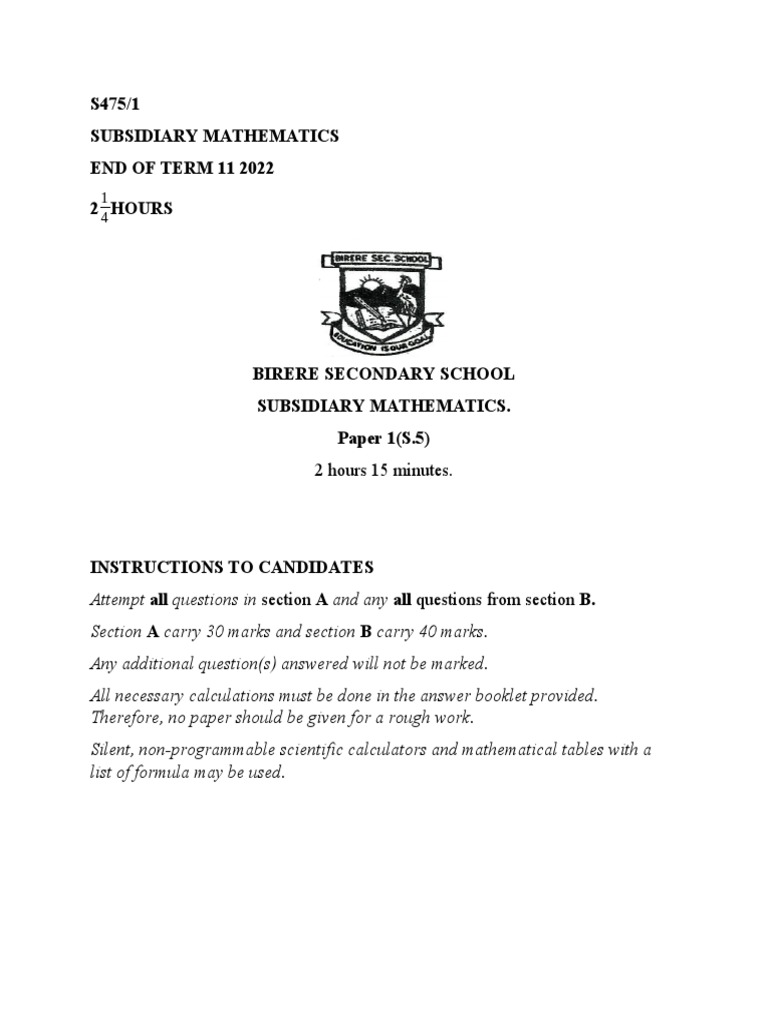 S5 Subsidiary Mathematics Term 11 Exam | PDF | Logarithm | Equations