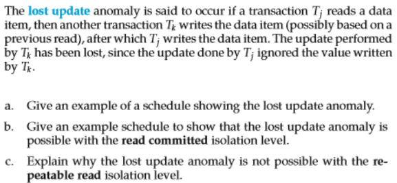 Solved The lost update anomaly is said to occur if a | Chegg.com