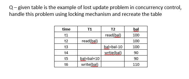 Solved Q-given table is the example of lost update problem | Chegg.com