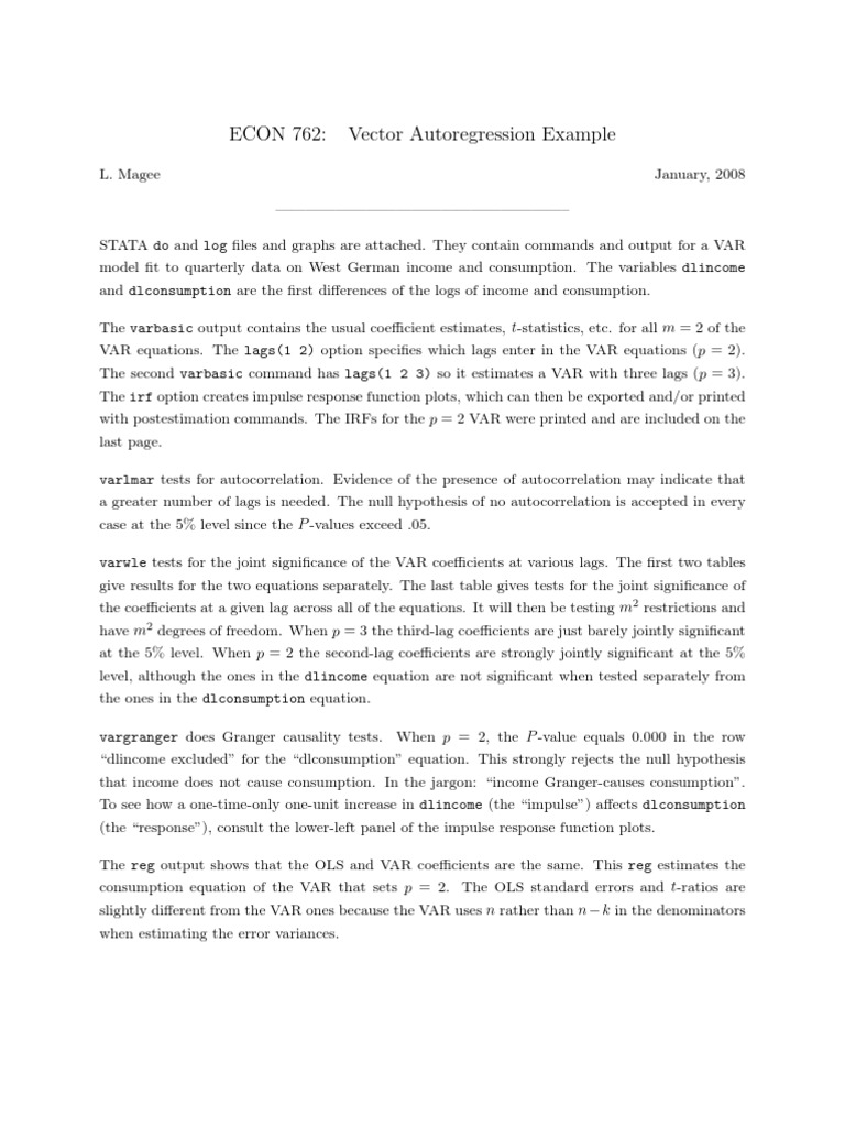 ECON 762: Vector Autoregression Example | PDF