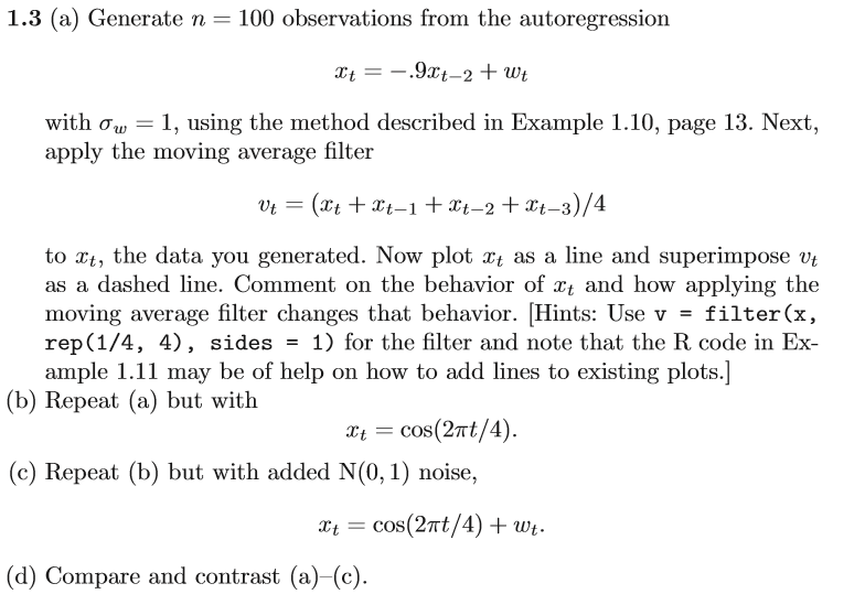 Solved 1.3 (a) Generate n 100 observations from the | Chegg.com