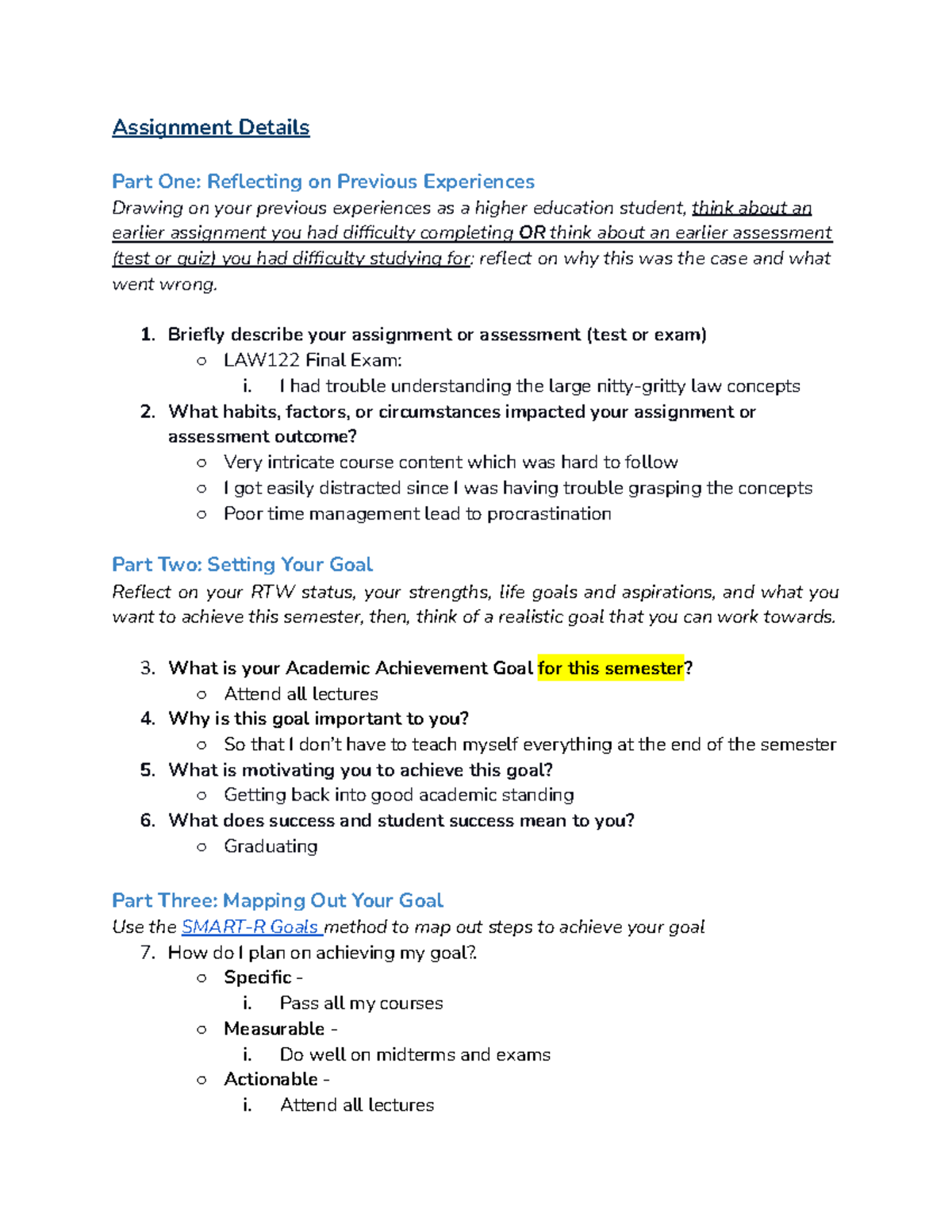 Academic Achievement Assignement - Assignment Details Part One ...