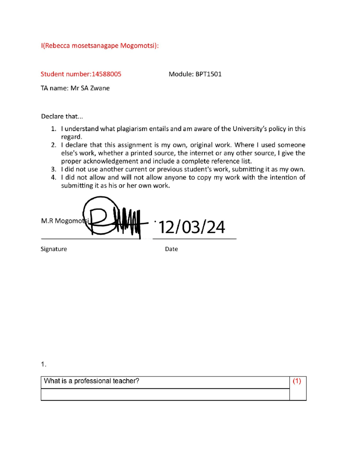 Guidelines for Authentic Individual Assignment Submission | Course Hero