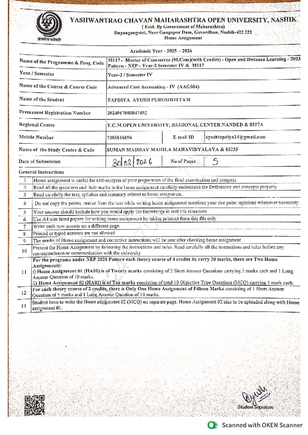Advanced Accounting and Auditing Home Assignment M.Com AAG602 Sem IV ...