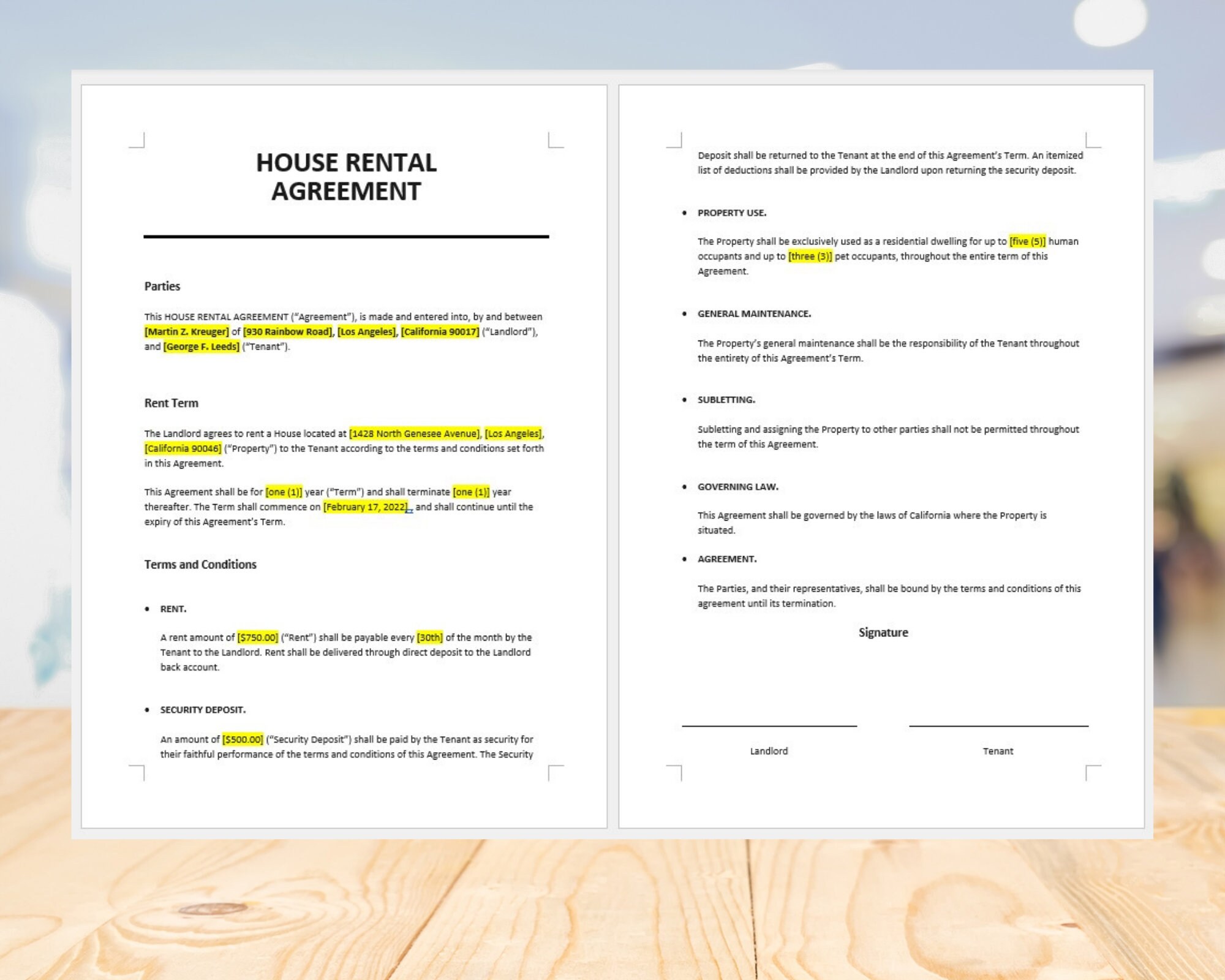 Residential Real Estate Rental Lease Agreement Template - Etsy