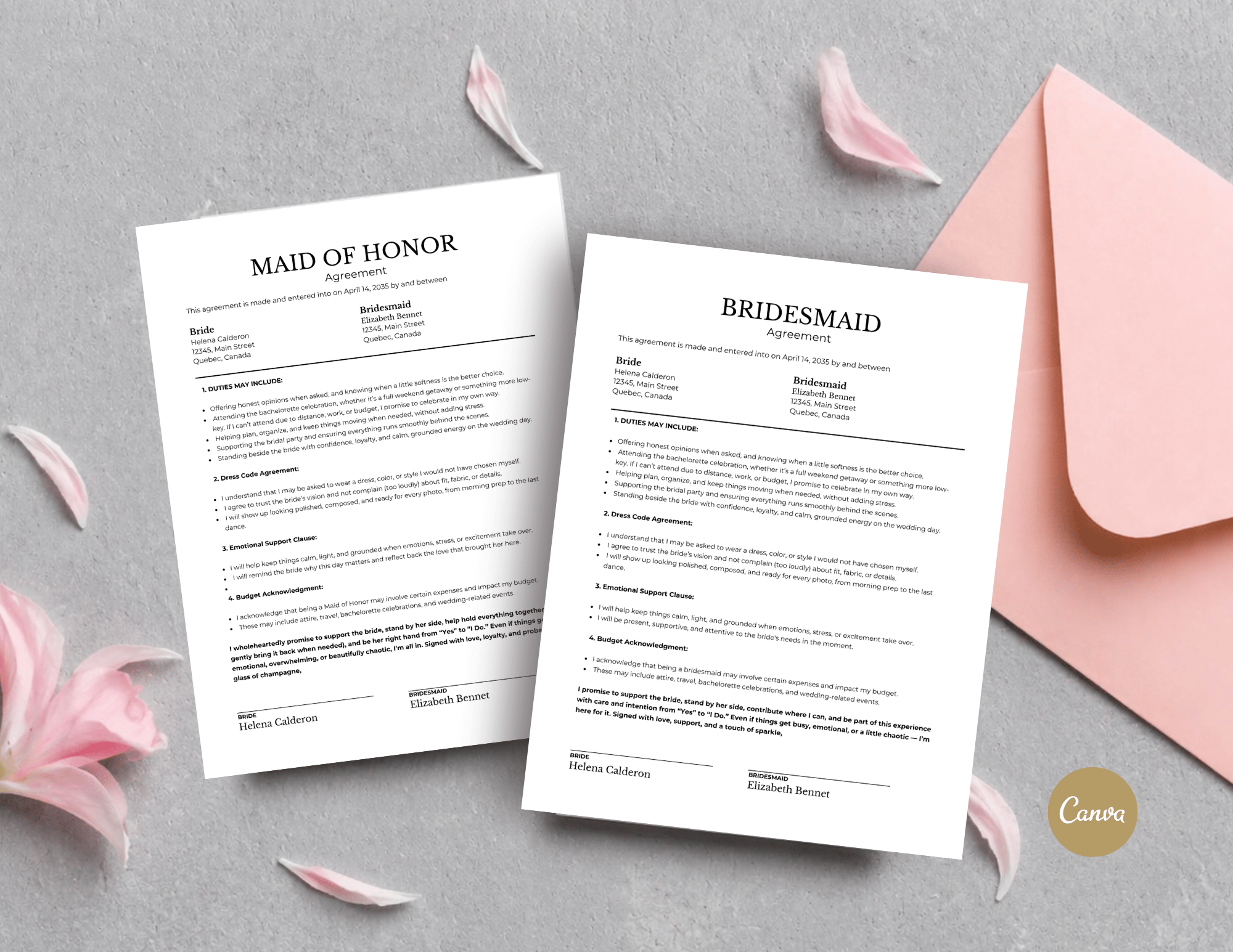 Bridesmaid & Maid Of Honor Agreement Card | Editable Canva Template ...