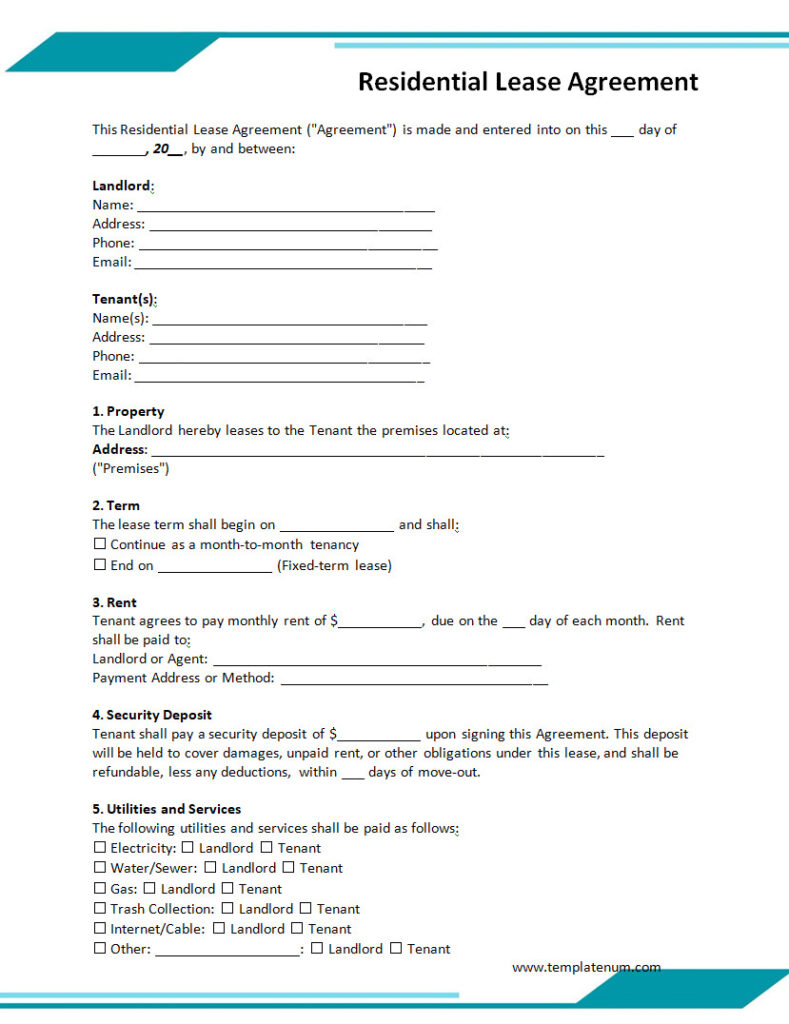 Free Printable Residential Lease Agreement Templates [PDF, Excel]