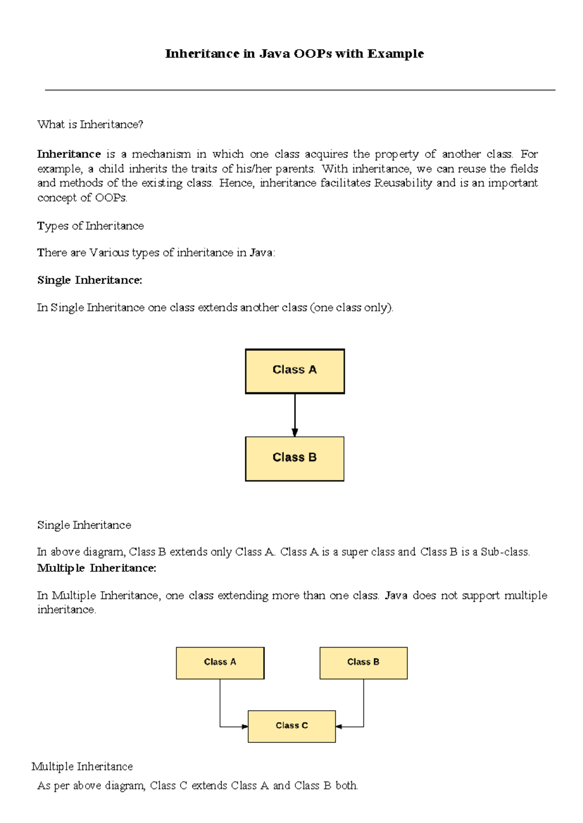 Inheritance in Java OOPs: Types, Examples, and Super Keyword - Studocu