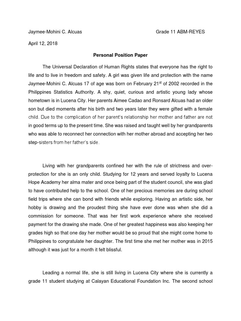 Academic Writing - Writing a Position Paper - Position Paper Position ...