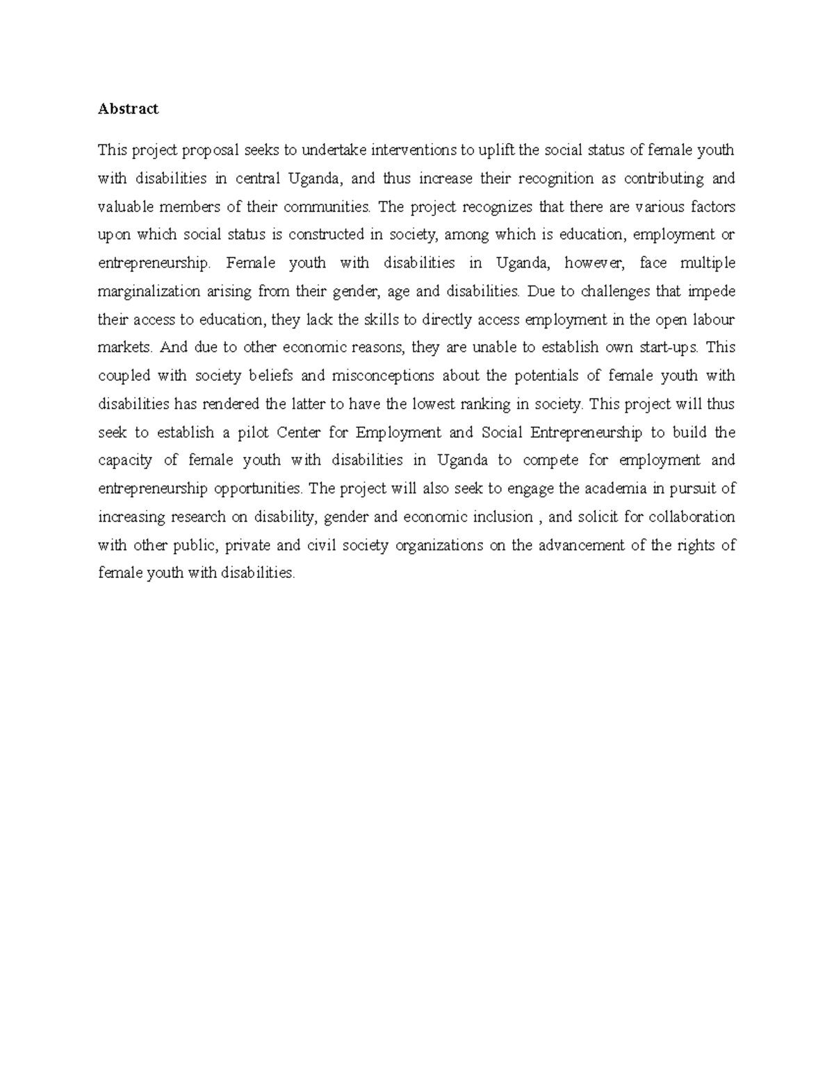 Abstract - Kaggwa - Abstract This project proposal seeks to undertake ...