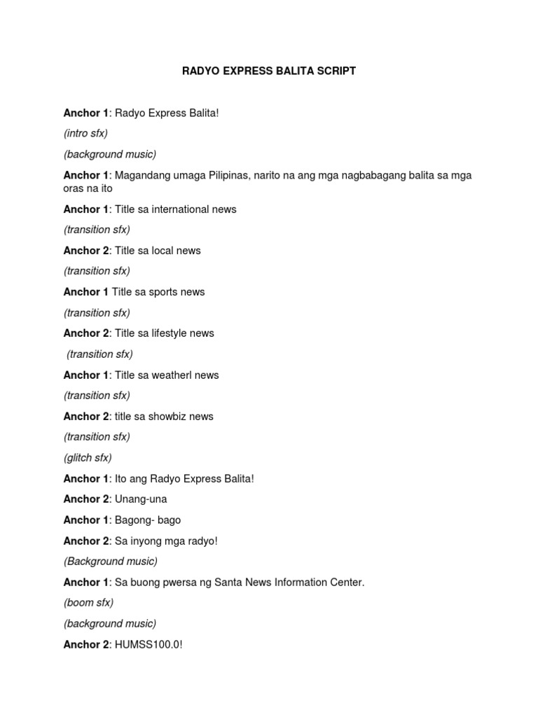 Sample News Sample Radio Broadcasting Script Tagalog / Radio ...