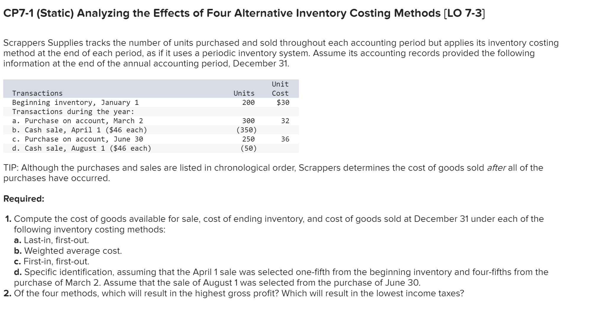Solved CP7-1 Analyzing the Effects of Four Alternative | Chegg.com