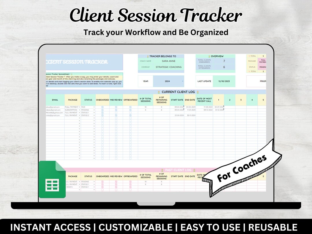 Client Session Tracker Google Spreadsheet for Coaches, Coaching Tracker ...