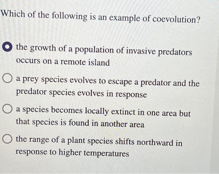Solved Which of the following is an example of coevolution? | Chegg.com