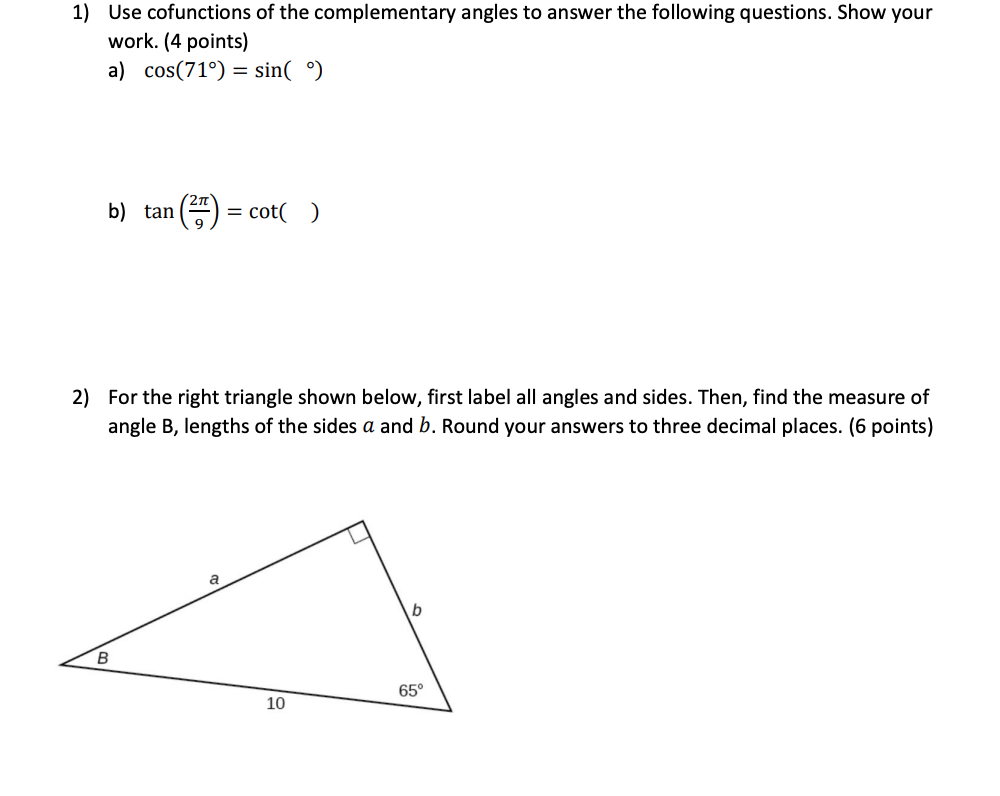 Solved 1) Use cofunctions of the complementary angles to | Chegg.com