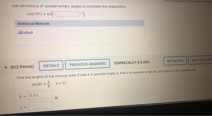 Solved Use cofunctions of complementary angles to answer | Chegg.com