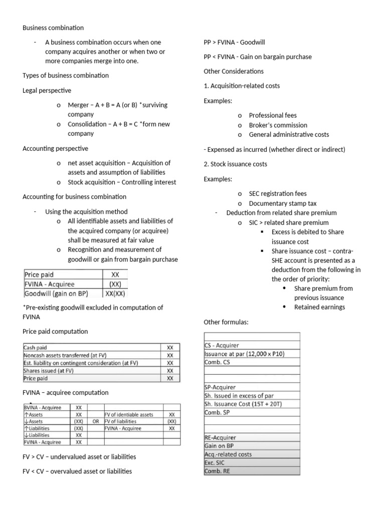 Business Combination Summary Notes - Business Combination - a ...