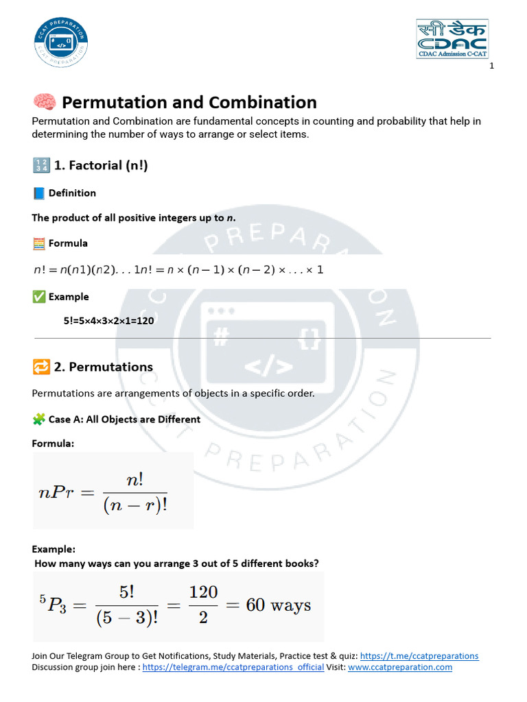 Combinations and Permutations Notes-1 | PDF | Permutation | Discrete ...