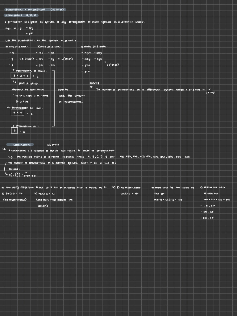 SOLUTION: Permutation combinations probability notes - Studypool