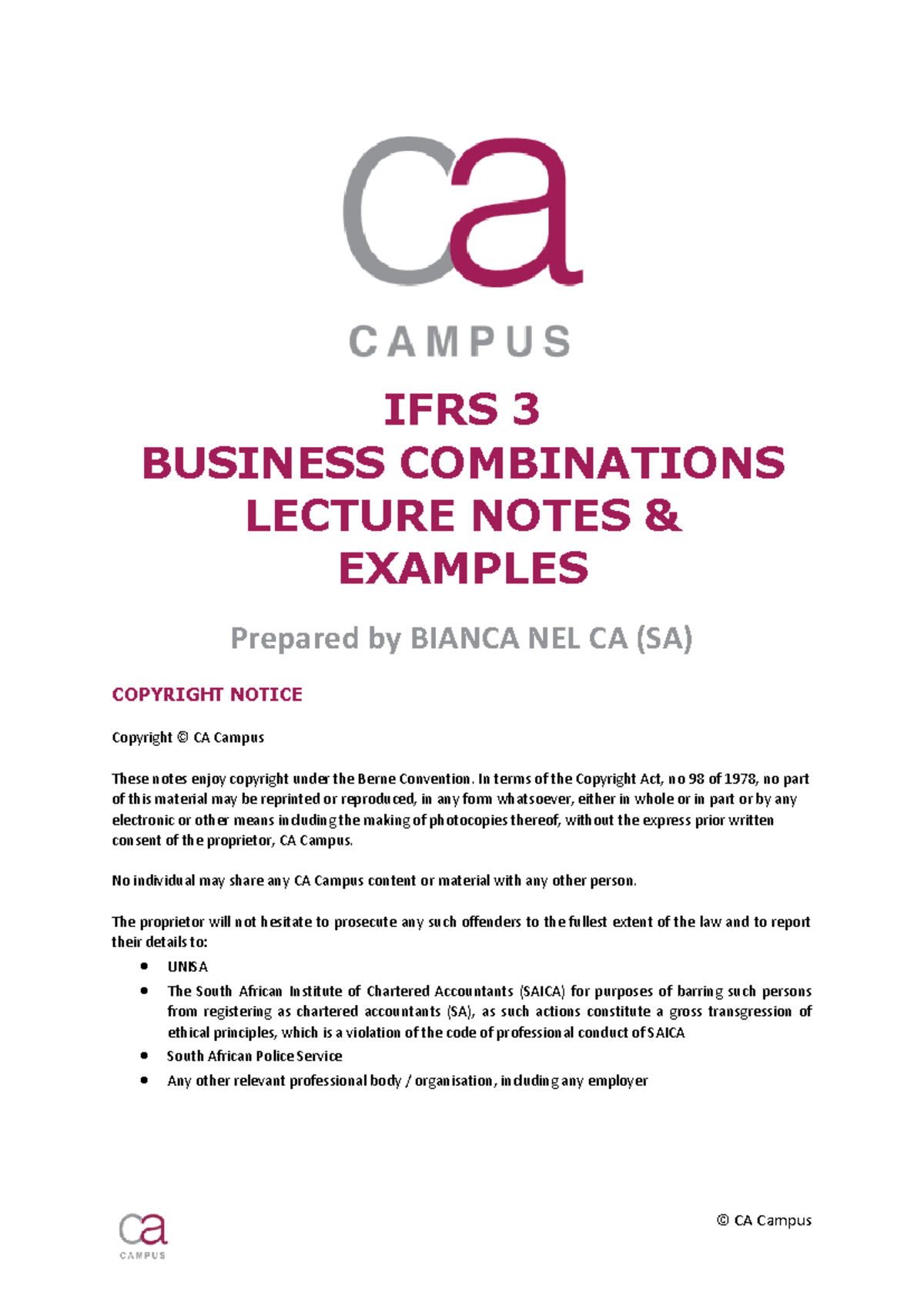 IFRS 3 - Business Combinations Lecture Notes & Examples for Students ...