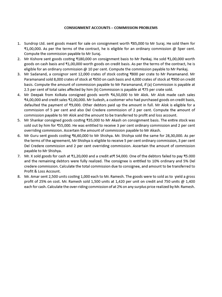 Consignment Accounts: Commission Calculations | PDF | Credit | Finance ...