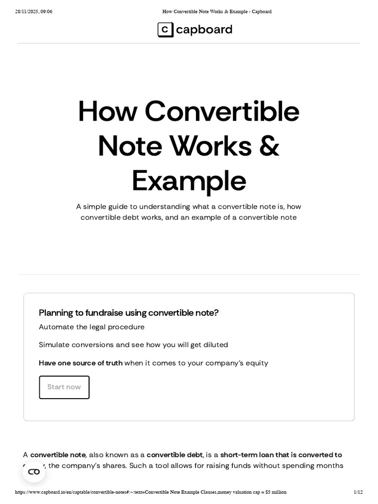 How Convertible Note Works & Example - Capboard | PDF | Convertible ...
