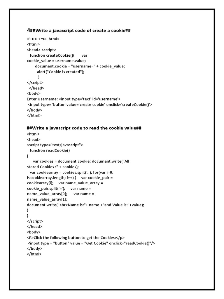 ##Write A Javascript Code of Create A Cookie## | PDF | Http Cookie ...