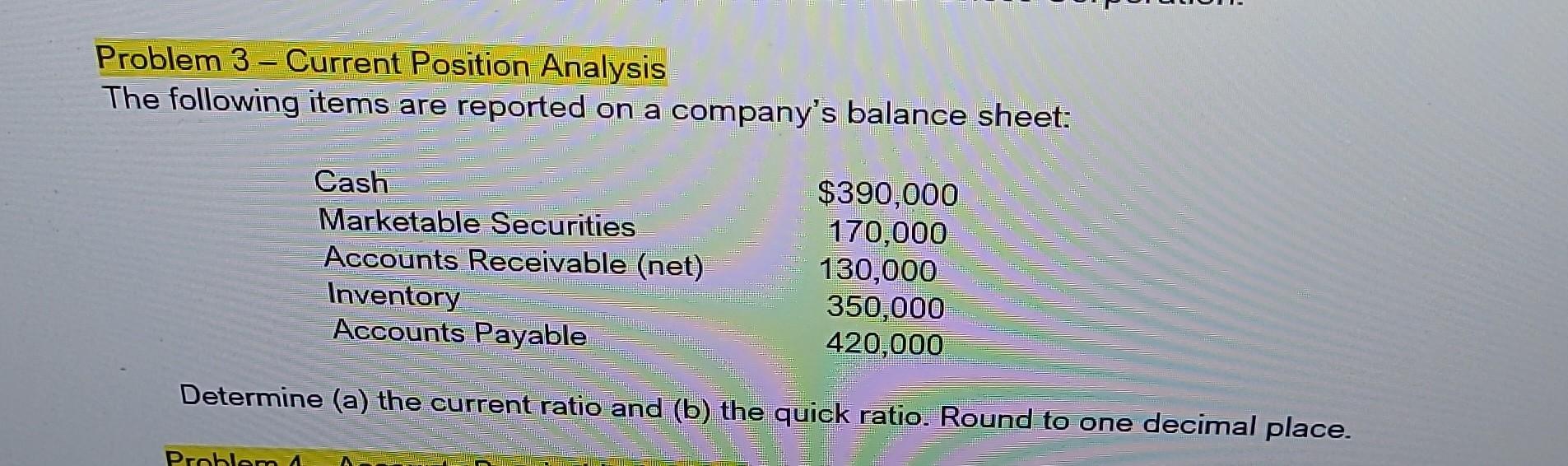 Solved Problem 3 - Current Position Analysis The following | Chegg.com