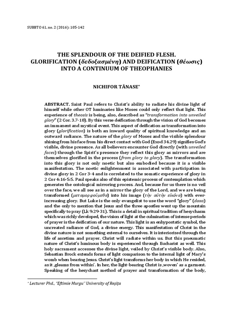 The Splendour Of The Deified Flesh. GLORIFICATION (δεδοξασμένη) AND ...