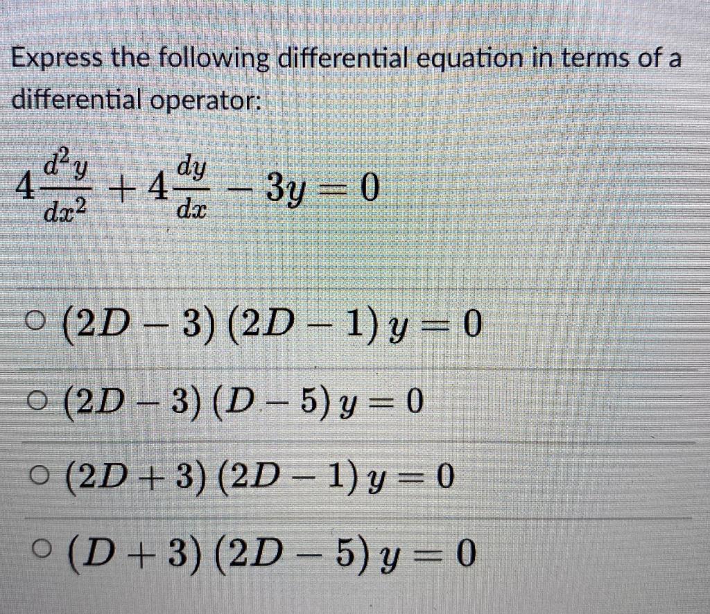 Write the Differential Equation in Terms of Differential Operators 9y ...