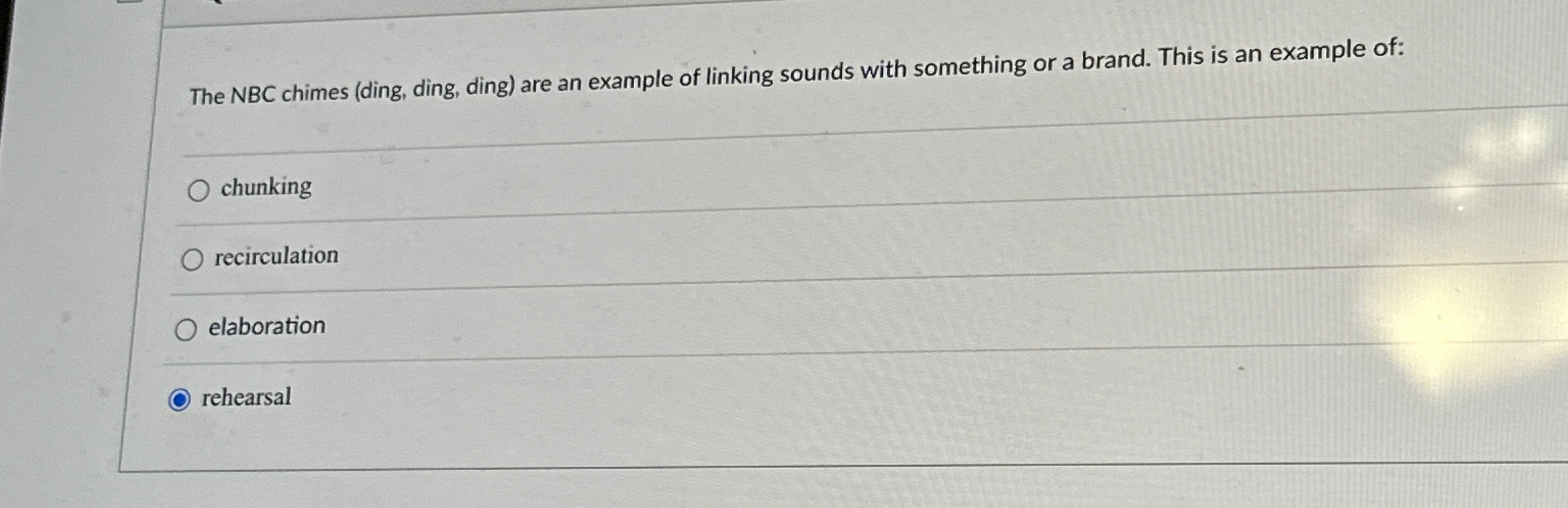 Solved The NBC chimes (ding, ding, ding) are an example of | Chegg.com